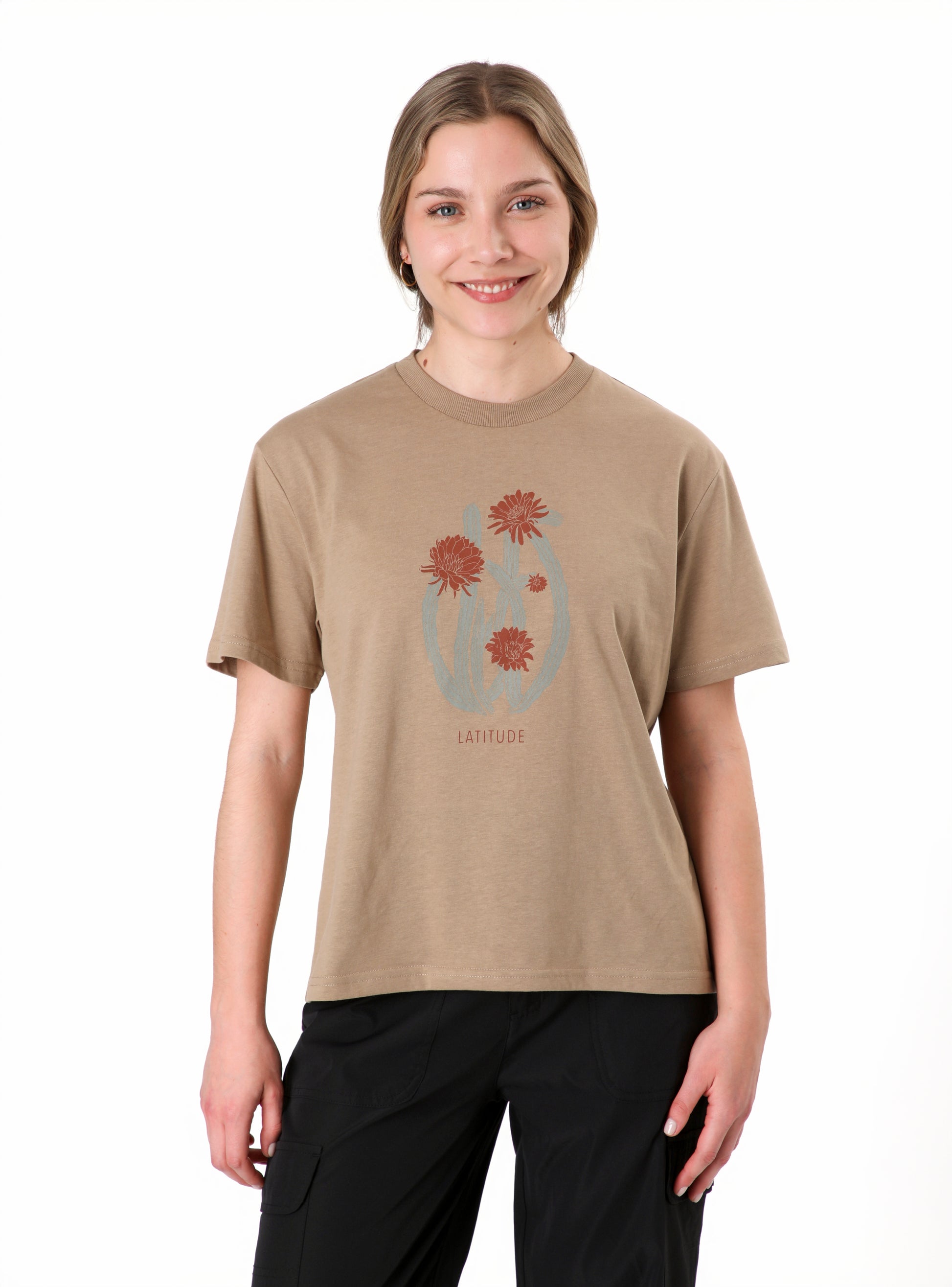 Polera con estampado confeccionada en algodón orgánico y poliéster. El algodón orgánico,